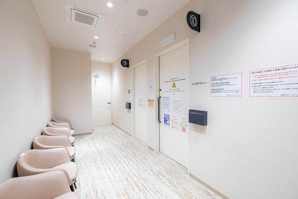 - 女性専用エリアでは、婦人科健診に特化した導線設計を行い、プライバシーに配慮した安心できる環境を整えております