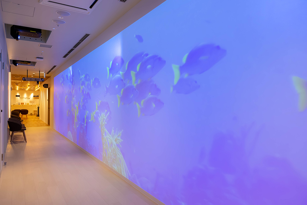 検査前のひとときが少しでも心安らぐ時間となるよう、ココットまちだ館では“海を感じる通路”を設けています。